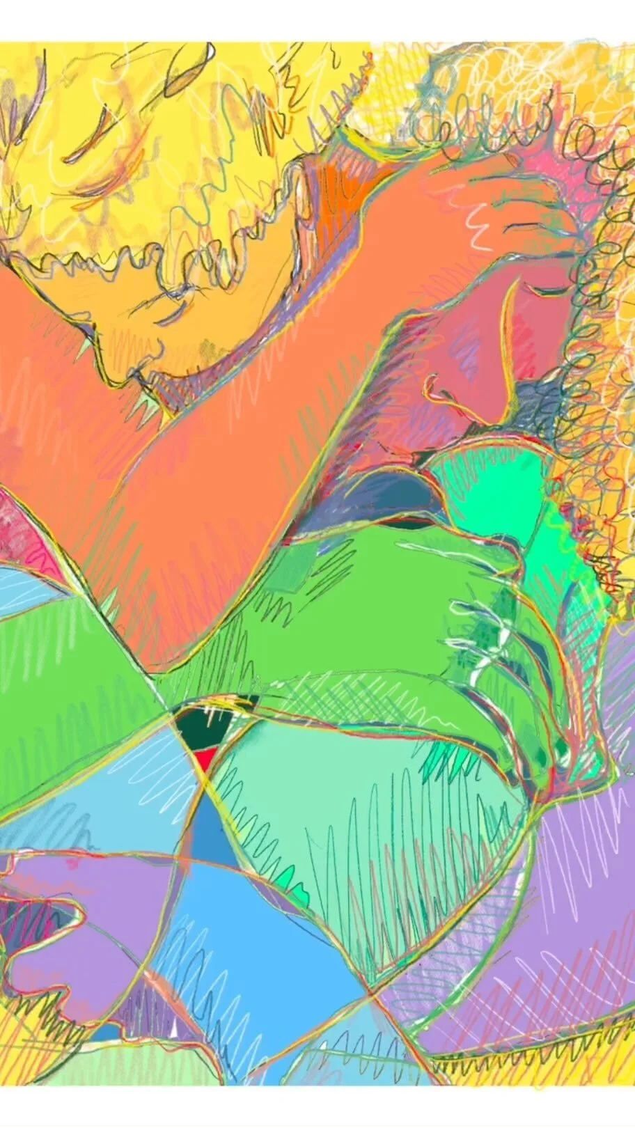 Three full sketchbooks with observational sketches have been used in reference for paintings in bright oil sticks and paint, made to more jazz.